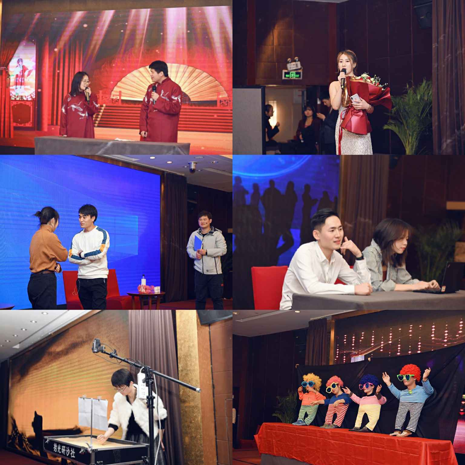 公司各部门同仁齐心协力,精心准备了各种别出心裁的节目:歌曲、相声、小品、双簧、层出不穷,更有沙画、创意小人舞,节目种类丰富,夺人眼球,让在场家人叹为观止!掌声、欢呼声、呐喊声、一浪高过一浪……屡屡掀起晚会高潮!